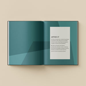 Cada artigo é ilustrado por uma obra do pintor Candido Portinari, que tem seus grandes painéis, “Guerra e paz”, cedidos justamente para a sede da Organização das Nações Unidas, órgão criado após a Segunda Guerra Mundial para sedimentar juridicamente a aliança entre os países depois do conflito que matou milhares de pessoas. Portinari também pintou a fome e as desigualdades sociais do Brasil.